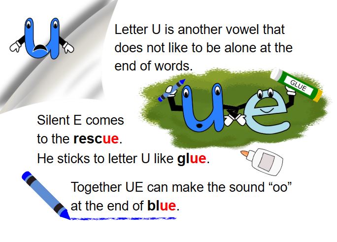 The letter U peeking over the top of the page. Letter U comes to the rescue.